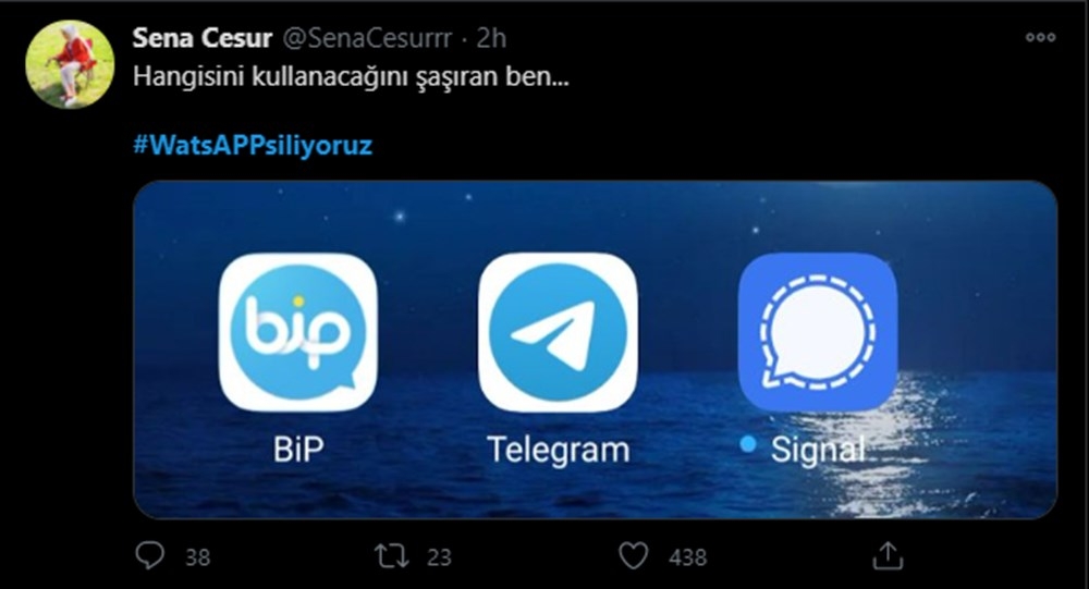 Zorunlu veri paylaşımı kararı sonrası açılan #WhatsAppSiliyoruz etiketine çok sayıda eğlenceli yorum geldi.