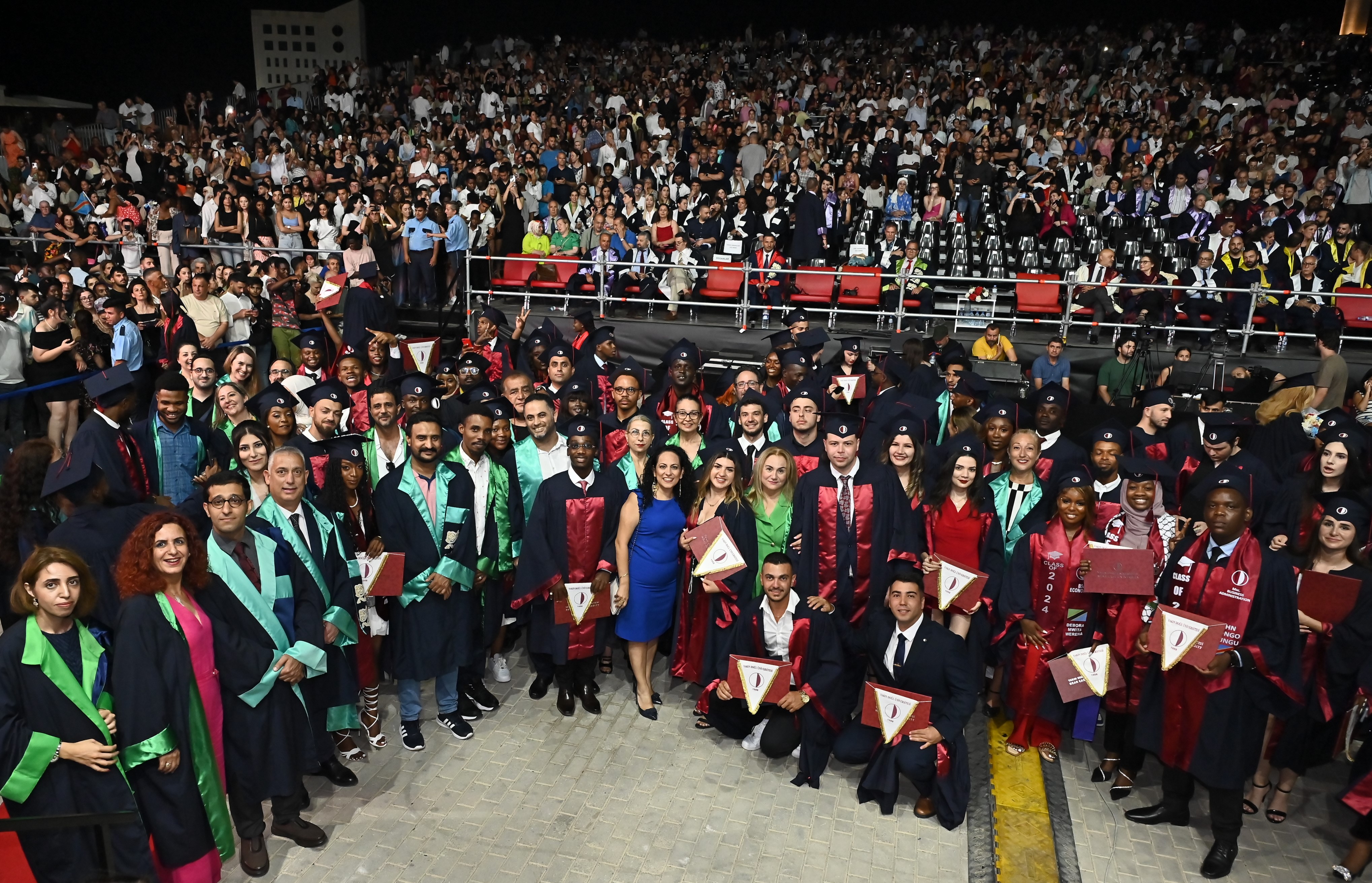 Yakın Doğu Üniversitesi’nin 21 fakülte, 3 yüksekokul ve Lisansüstü Eğitim Enstitüsü’nden mezun olmaya hak kazanan öğrenciler, geleceğe ilk adımlarını atacaklar. 23 Haziran Pazartesi günü düzenlenecek olan törenlerin ilkinde; Atatürk Eğitim, Fen-Edebiyat, Güzel Sanatlar ve Tasarım, Hukuk, İlahiyat ve İletişim fakültelerinden 719 öğrenci mezun olacak. 24 Haziran Salı günü düzenlenecek ikinci törende ise İktisadi ve İdari Bilimler, Mimarlık, Spor Bilimleri, Yapay Zeka ve Bilişim Fakültesi, Turizm ve Sağlık Hizmetleri Meslek Yüksekokulu’ndan mezun olmaya hak kazanan 770 öğrenci diploma alacak. 25 Haziran Çarşamba günü yapılacak olan üçüncü törende Mühendislik, İnşaat ve Çevre Mühendisliği, Sağlık Bilimleri, Hemşirelik, Ziraat fakültelerinden 730 öğrenci mezun olacak. 27 Haziran Cuma günü düzenlenecek son törende ise Tıp, Diş Hekimliği, Eczacılık ve Veteriner Hekimliği fakültelerinden 513 öğrenci meslek hayatlarına ilk adımlarını atacak.