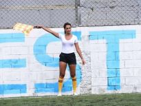Brezilyalı Güzel model Denise Bueno bir maçta yan hakem olunca ortaya birbirinden farklı görüntüler çıktı.