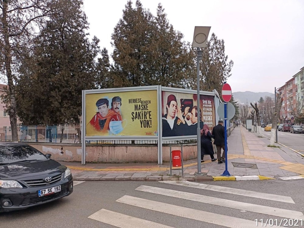Afişlerde "Süt Kardeşler", "Çiçek Abbas" filmleri ile "Alaaddin'in Sihirli Lambası" gibi çizgi filmlerin sahneleriyle akıllara kazınan replikler, tedbirlere uyarlanarak kullanılıyor.