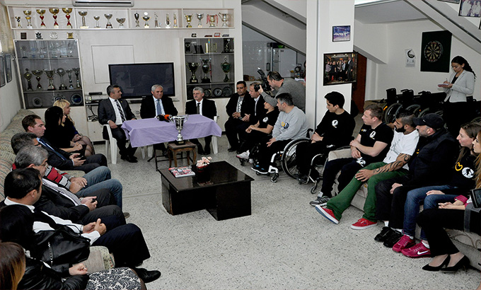 Başbakan Özkan Yorgancıoğlu, bugün Kıbrıs Türk Engelliler Federasyonu’nu ziyaret ederek, Tekerlekli Sandalye Basketbol Eurolig’de yarışacak olan Kuzey Kıbrıs Turkcell Tekerlekli Sandalye Basketbol Takımı’na maddi ve manevi destek belirtti, başarı diledi.
