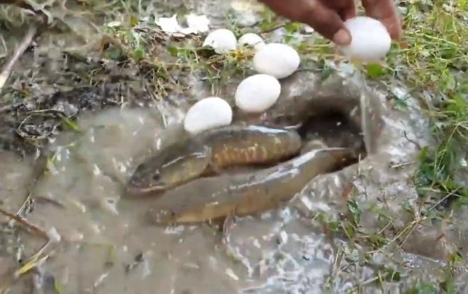 YouTube fenomeni suya yumurta kırarak balık avladı