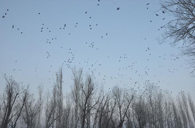 Hakkari'nin Yüksekova ilçesinin Akalın Mahallesinde 5 yıldır yaz-kış ağaç dallarında bulunan binlerce karga sürüsü ilginç görüntüler oluşturuyor.