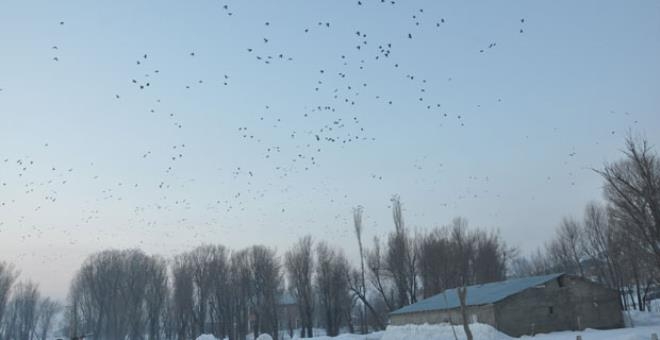 Hakkari'nin Yüksekova ilçesinin Akalın Mahallesinde 5 yıldır yaz-kış ağaç dallarında bulunan binlerce karga sürüsü ilginç görüntüler oluşturuyor.